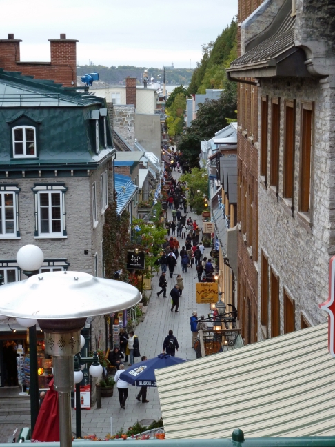 Der weitere Weg führt außerhalb der oberen Altstadt an der Place Jeanne d'Arc vorbei durch die Wohn-, Einkaufs- und Freßstraßen rund um die Rue Cartier, wo es auch ein paar verbliebene historische Häuschen zu besichtigen gibt (allerdings nur von außen). Anschließend geht es nochmals durch die obere Altstadt zur Unterstadt. Nach einem kurzen Stop mit Ausflug zur Kirche Notre Dame des Victoires und in ein paar Nebenstraßen werden wir zum Hotel zurückgebracht.