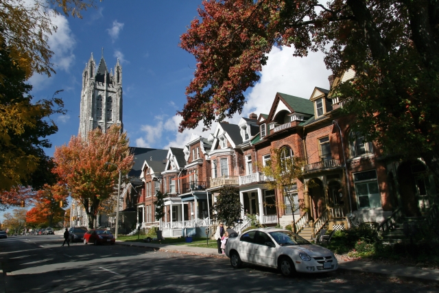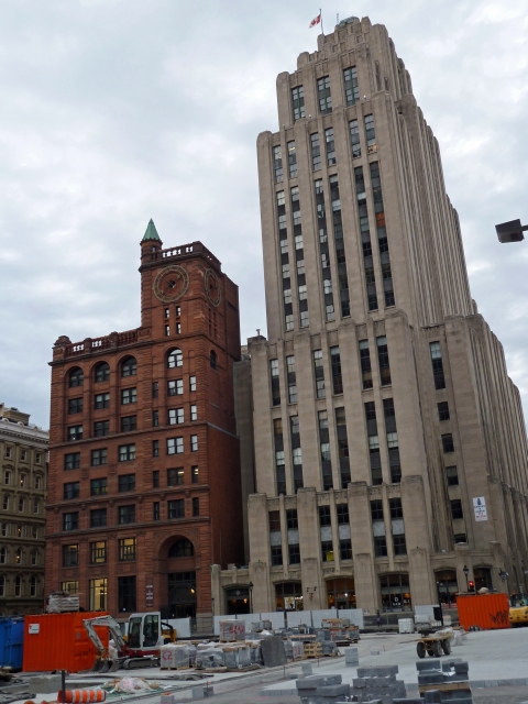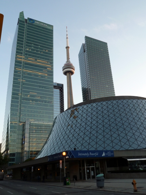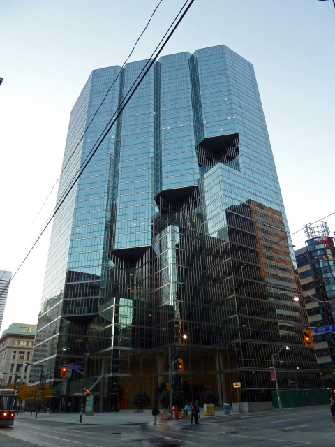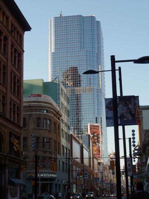 Da wir mit unseren U-Bahn-Tokens zurückwollen, gehen wir die College Street entlang und bekommen dabei einige der alten Universitätsgebäude zu sehen, aber auch einen interessanten spiegelnden halbrunden Wolkenkratzer, in dem die Universitätsaugenklinik untergebracht ist. Nicht weit entfernt ist das Provinzparlament.