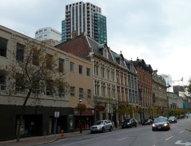 Hinter der OCAD ist eine Straßenzeile mit victorianischen Wohnhäusern, die genauso in San Franciso stehen könnte. Anschließend gehen wir durch zwei Geschäftsstraßen in Chinatown, insgesamt ziemlich verhaut mit vielen Lebensmittel- und noch mehr Kruschtläden, wie man sie eigentlich in allen Chinatowns findet. In einem kauft Marianne eine Glückstrommel. Mir erschließt sich der besondere Reiz der Chinatowns mit ihren vielen Plastikkruschtläden nicht wirklich, so auch nicht hier. Besonders kurios sind die aus der Straße ragenden Wasserleitungen für die Hausanschlüsse.