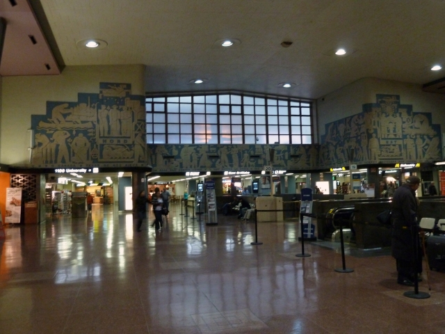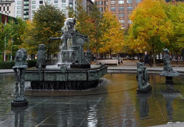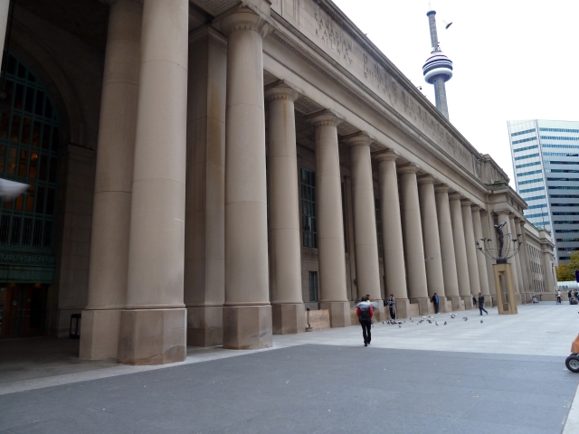 Von dem recht gut ausgestatteten Frühstücksbuffet nehmen wir nicht allzu viel, weil der Hunger nicht allzu ausgeprägt ist. Da wir gestern nicht gerade viel von der Stadt hatten, wollen wir die Zeit bis zum Checkout (Limit 13:00!) ausnutzen und marschieren los zur nächsten U-Bahn-Station. Nach 100 Metern beschließe ich, zurückzugehen und für uns beide wärmere Jacken zu holen, die wir recht gut brauchen werden. In der U-Bahn-Station streben wir erst die falsche Fahrtrichtung an – macht aber nichts, weil uns ein Angestellter so hat reingehen lassen, nachdem der Ticketschalter geschlossen war („pay at the next station“?!). Wir gehen wieder raus und finden beim Zugang zur richtigen Richtung einen funktionierenden Automaten, der uns für einen 10-Dollar-Schein 4 Tokens verkauft (eine Einzelfahrt hätte 3 CAD gekostet).