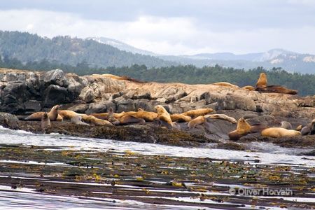 So im letzten Drittel der Fahrt sind wir noch zu ein paar Seelöwen gefahren. Die scheinen dort das ganze Jahr zu sein. Wirklich Unmengen davon, inkl. einiger Vögel.