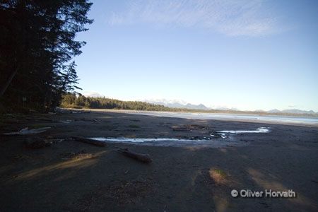 Zu der Strecke zwischen Najamo und Tofino muss man erwähnen, dass hier fahrerisches Können durchaus nicht verkehrt ist. Es geht Ewigkeiten: Hoch, runter, links Kurve, rechts Kurve, teilweise nur auf Schotter/Sand. Und schnell fahren geht da schon gar nicht. Man brauch für diese Strecke auch eine ganze Latte Zeit. Also nicht denken, dass man hier mal etwas Zeit aufholen kann. Dazu kam noch, dass es tatsächlich auf dieser Strecke das erste Mal geregnet hat (während unseres Kanadabesuches). In Tofino waren wir erst so gegen 20:30h. Dank Wegbeschreibung, haben wir auch gleich das B&B (