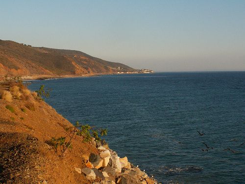 In der Ecke von San Simeon fanden wir eine kleine Bucht, zu der wir runter liefen, um uns eine Weile am Strand die Füße zu vertreten. Als ich einen größeren Felsen im Meer, aber in Strandnähe sah, kam das Kind im Manne durch. Ich beobachtete wie die Wellen bis zum Strand kamen, um sich anschließend bis hinter diesen Fels zurückzuziehen. Das war zwar nicht bei jeder Welle der Fall, aber hin und wieder. Also wartete ich den richtigen Moment ab, lief zum Felsen und kletterte auf ihn. Das hatte perfekt geklappt und ich genoss meinen Platz inmitten des Pazifiks. Ich hatte jedoch irgendwie den Eindruck, dass die Wellen hinter mir immer höher wurden und wollte den Fels daraufhin verlassen. Nur zog sich das Wasser leider nicht mehr so weit zurück, wie noch vor wenigen Minuten. Sehr zur Belustigung von Tina, die eine regelrechte Fotoserie von mir und meinem Felsen schoss, stand ich da und wartete auf meine Chance. Und die ließ auf sich warten. Ich sah schon bildlich vor mir, wie mich von hinten eine große Welle vom Felsen spült. Aber nach etwa 5 Minuten des Wartens tat sich eine einzige Gelegenheit auf, welche ich nutzte und trocken am Ufer ankam. Nach diesem aufheiternden Erlebnis gingen wir gut gelaunt zurück zum Auto. Doch unsere gute Laune sollte sich schlagartig ins Gegenteil verwandeln. Nachdem wir los gefahren waren holte Tina den Laptop aus dem Fußraum um auf die Navigation zu schauen. Dabei bemerkte sie, dass das Netzkabel nicht verbunden war. An diese Kfz-Adapter kann man die unterschiedlichen Notebook-Stecker anschließen, wobei natürlich auf die korrekte Polung zu achten ist. In ausgeschaltetem Zustand kein Problem, denn es gibt einen dünnen und einen dicken Zapfen. Diese Anschlusstechnik hatte ich Tina auch bereits im Vorfeld erläutert. Nun gut, Frauen und Technik, was soll man sagen. Jedenfalls steckte der eine Anschluss im Notebook und der Adapter selbst war am Zigarettenanzünder betriebsbereit. Nun versuchte Tina die zwei Enden wieder zusammen zu bekommen und wie es in solchen Fällen nun mal ist, erwischte sie exakt die falsche Polung. Ich hatte das Ganze noch nicht bemerkt, bis ich plötzlich einen verschmorten Geruch in der Nase hatte. Und dann sah ich, was meine bessere Hälfte versuchte und geriet schlagartig in eine Art Schockzustand. Als erstes fielen mir die etwa 1.700 Fotos ein, welche mittlerweile auf dem Notebook gespeichert waren. Dann der Ausfall des Navis für die restlichen Tage und, und, und... Unsere gute Laune war also verflogen und der momentane Umgangston etwas frostiger, was sich aber bald wieder legte. Dafür war diese Küstenlandschaft einfach zu schön.