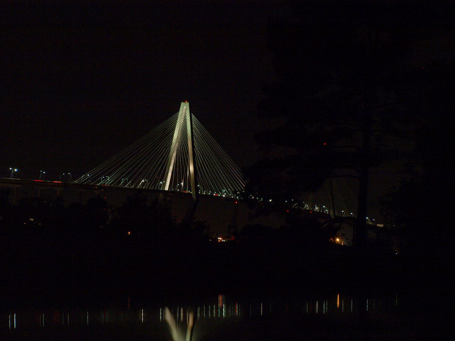 So ein kleiner Strandspaziergang im Dunkeln hat was. Wir steckten die Füße kurz ins Wasser, stiegen mit sandigen Füßen ins Auto und versuchten dann nach der Rückkehr nach Mt. Pleasant, so nahe wie möglich an die beleuchtete Ravenel-Brücke zu kommen, um ein paar Fotos zu machen.