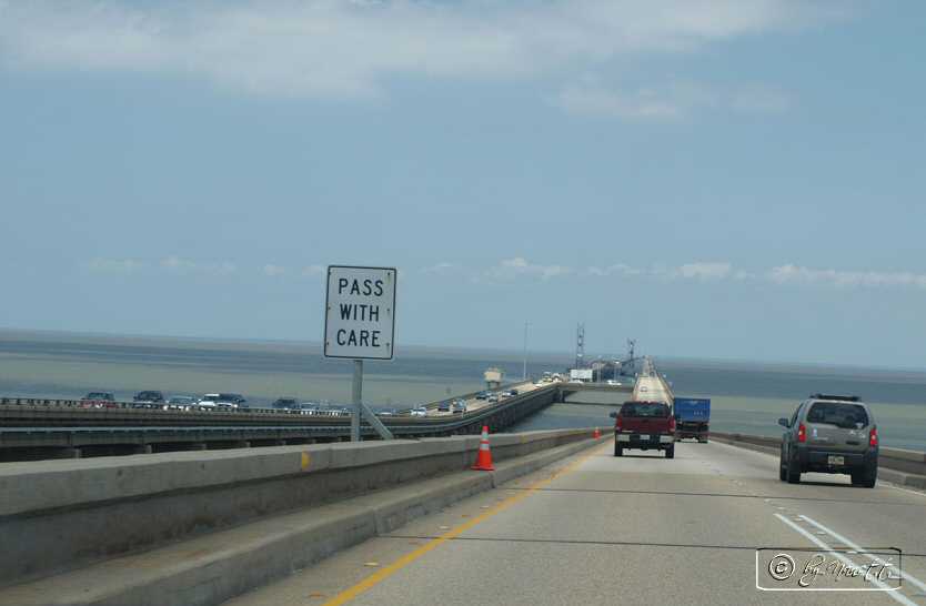 Mein Mann hatte nämlich 2 Tage vorher herausgefunden, dass über den Lake Ponchartrain der Lake Ponchartrain Causeway führt, die weltweit längste Brücke über Wasser und die zweitlängste Brücke der Welt (rund 38 km lang). Das mussten wir „mitnehmen“ es gab keine Diskussionen.