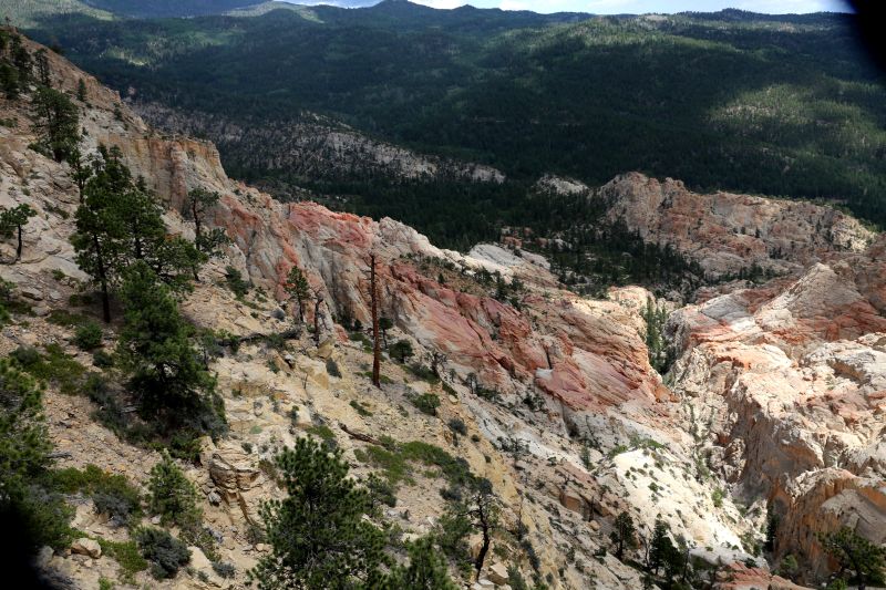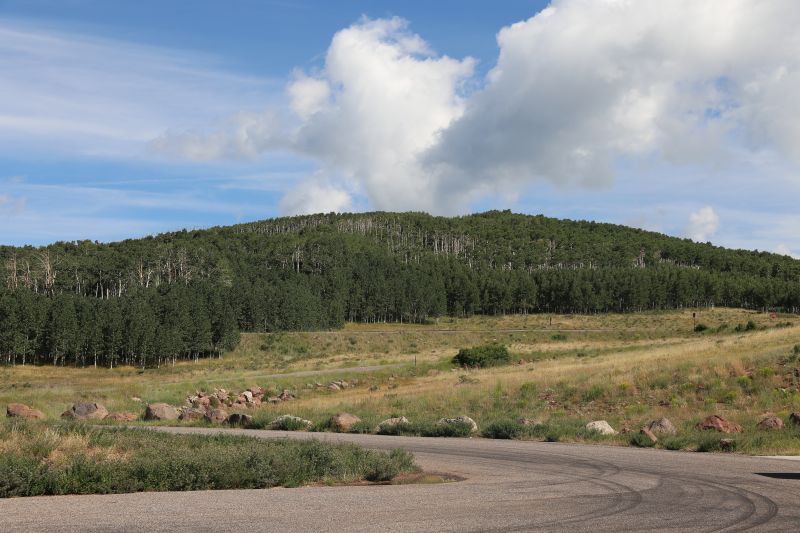Aus unserer Sicht ist die Hellsbackbone Road kein "must see", die meiste Zeit fährt man durch Wald, die Waschbrett-Schotterstraße sorgt für entsprechende Massage des Allerwertesten. Fazit: 30 Meilen Gravel Road, wie gesagt mit heftigem Washboard-Charakter. Anfangs führt die Straße durch buschgesäumtes Ranchland, um sich dann meist durch Pine Forrest hinauf in das eher felsige Gelände an der Hellsbackbone Bridge zu schlängeln.