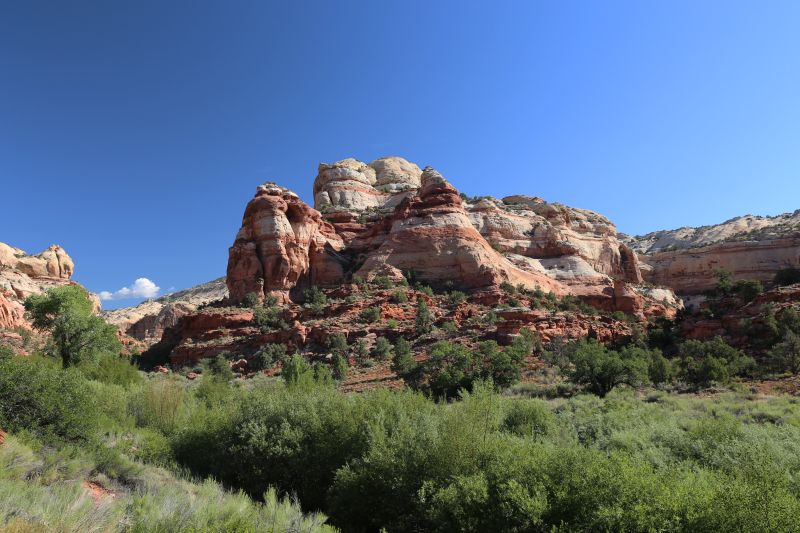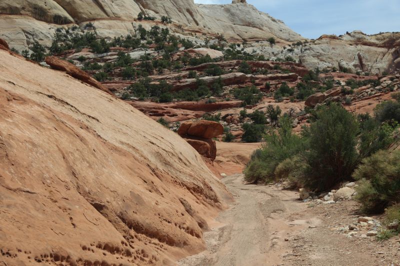 Gleich nach Boulder geht es via "The Hogback" einem der spektakuläreren Teile der UT24 zum Calf Creek Recreation Area, dem Ausgangspunkt für unsere heutige Wanderung zu den Lower Calf Creek Falls.