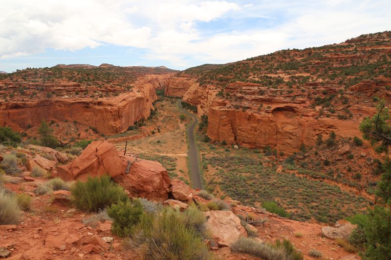 01.08.2014 - Boulder - The Hogback - Lower Calf Creek Falls - Hells Backbone Road - EscalanteDie Tagesbeschreibung klingt lang, doch es bahnt sich ein relativ entspannter und wechselhafter Tag an.