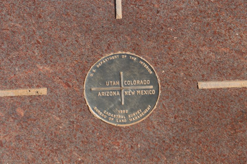 Wenn die Touristen  8) schon am Touristennepp vorbei kommen, dürfen sie ihn noch nicht links liegen lassen. Das gilt in diesem Fall für uns das Four Corners Monument - eine tolle Einnahmenquelle für die Navajos - wir berappen stolze 15 USD für den Zugang und dürfen uns schon zivilisiert anstellen und ein typische Erinnerungsfoto zu bekommen. Die zahlreichen Verkaufsstände sparen wir uns aber.