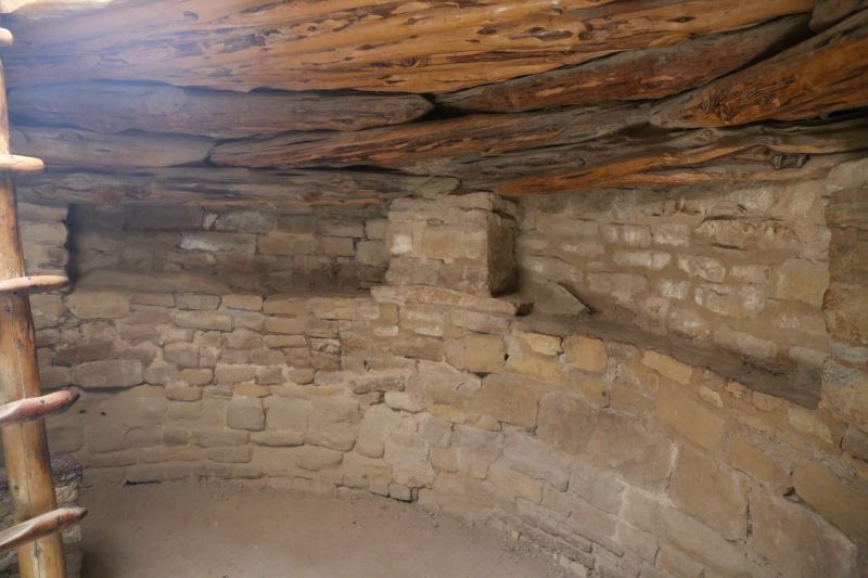 Bevor wir zum Spruce Tree House hinunter gehen - frei zugänglich, ohne Voranmeldung - mussten wir noch einen heftigen Wolkenbruch unter dem Dach des Museum's überbrücken. Bei Spruce Tree kann man die einzige überdachte Kiva im Mesa Verde N.P. besichtigen.