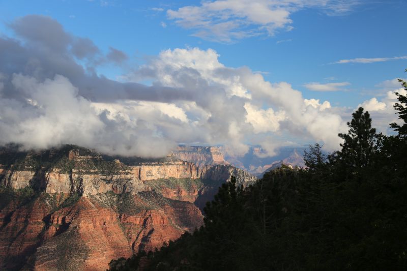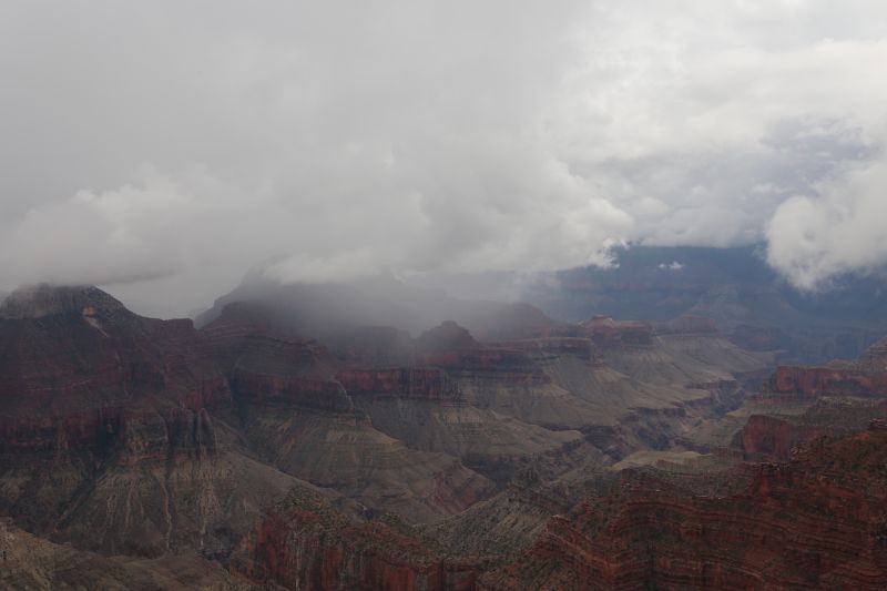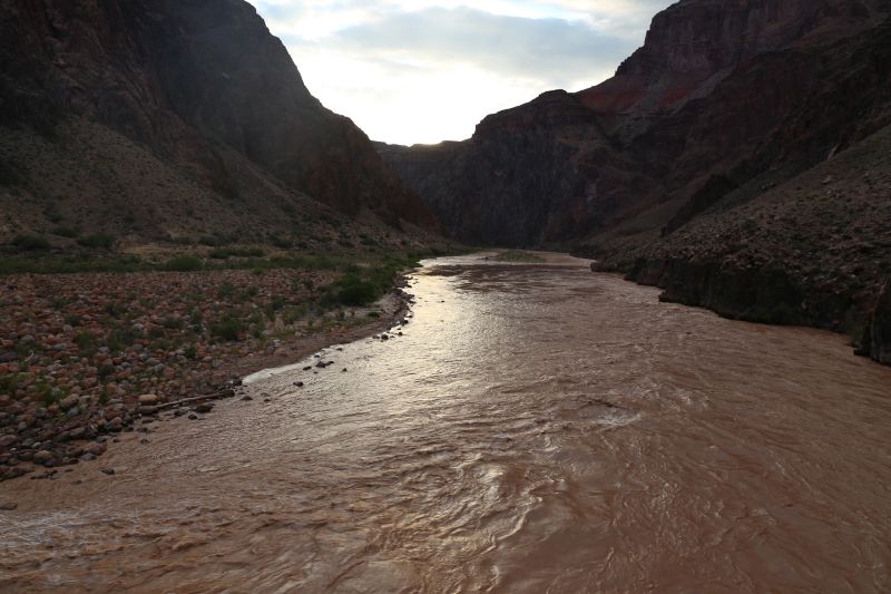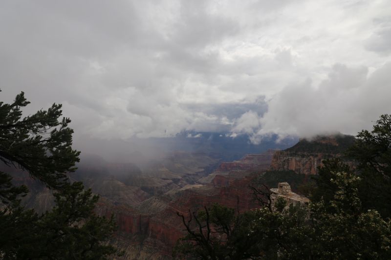 Der Wecker klingelt mich um 4 Uhr nach eher unruhigem Schlaf aus dem Bett. Die ganze Nacht über tobte ein mehr als heftiges Gewitter über dem Canyon. Nun ist aber ruhig draußen und der Regen hat aufgehört.