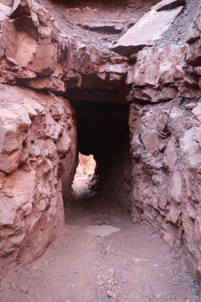 Nach 2,5 km und 440 hm erreiche ich den Supai Tunnel, die erste Möglichkeit Wasser zu "tanken", das lokale Thermometer zeigt inzwischen 13 Grad.