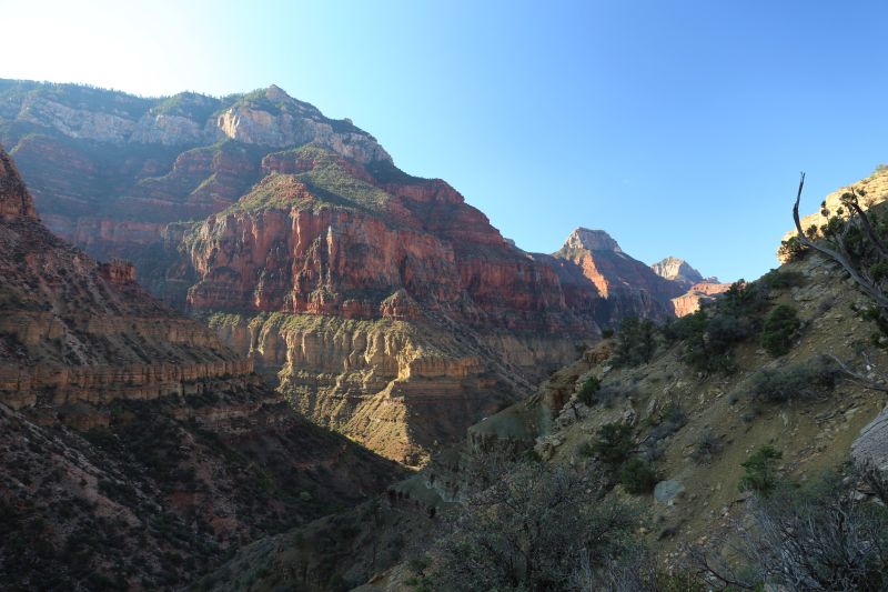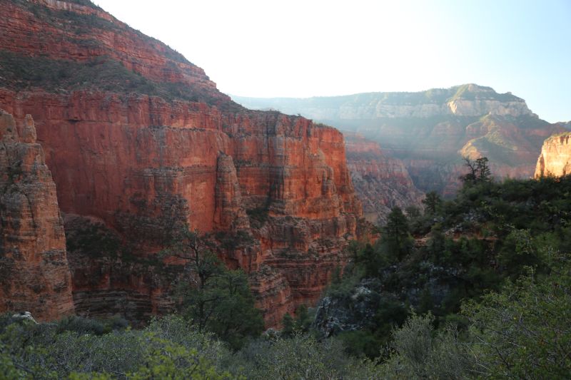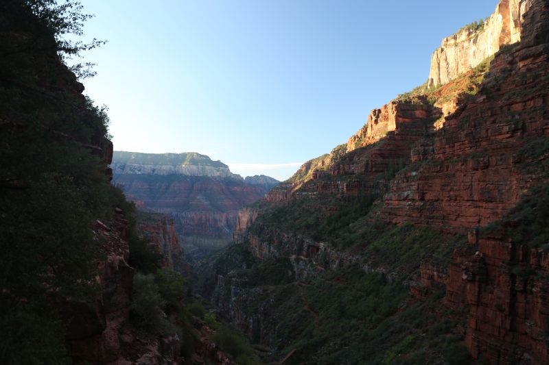 Da der Canyon um diese Zeit zur Gänze im Schatten liegt, ist es angenehm zu gehen und ich brauch keine Pausen. Zu den Hikingtipps der Ranger komm ich evtl. später noch.