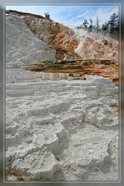 Die Terrassen sind durch Kalk- und Mineral-Ablagerungen aus dem Wasser heißer Quellen entstanden. Das Wasser wird im Untergrund durch das heiße Vulkangestein erwärmt. Der Yellowstone Nationalpark befindet sich ja auf einem riesigen Vulkan, aber daran sollte man wohl besser nicht denken, wenn man dort ist  :nono: