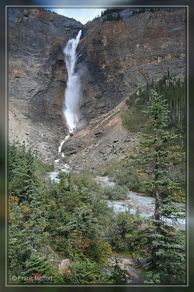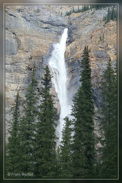 Nach einem kurzen Aufenthalt, fuhren wir um ca. 15 Uhr weiter zu den Takakkaw Falls, die ebenfalls über eine Stichstraße zu erreichen sind und wo wir gegen 15:15 Uhr ankamen. Schon auf der Fahrt zum Parkplatz ist dieser gewaltige Wasserfall nicht zu übersehen.