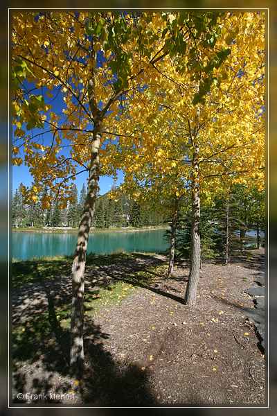 Um ca. 15 Uhr erreichten wir Banff. Zunächst durchquerten wir die Stadt und fuhren zum Bow River. Dort liefen wir ein bisschen herum. Einige Bäume am Fluss hatten schon ihre Herbstfärbung angenommen und so etwas liebe ich ja.