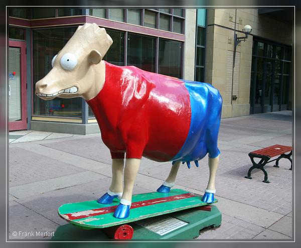 Wir blieben ca. eine halbe Stunde oben und gingen anschließend weiter durch die Stadt. Dabei kamen wir an dieser Simpsons-Kuh oder was auch immer das sein sollte vorbei :)