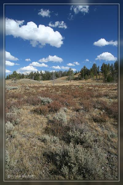 Um ca. 8:45 Uhr endete die Nebenstrecke wieder auf der Hauptstraße und wir befuhren diese weiter Richtung Süden. Kurz darauf bogen wir auf den Fountain Flat Drive ab, eine kurze Stichstraße, welche wiederum am Firehole River entlang führt.