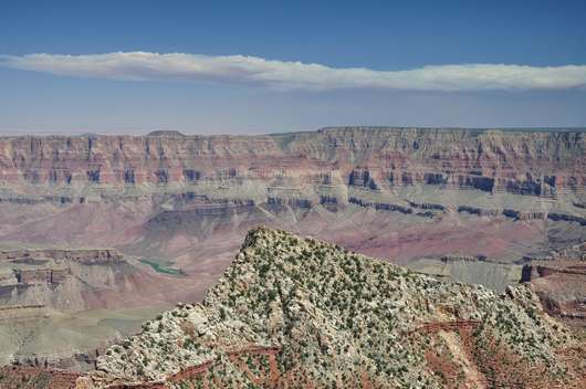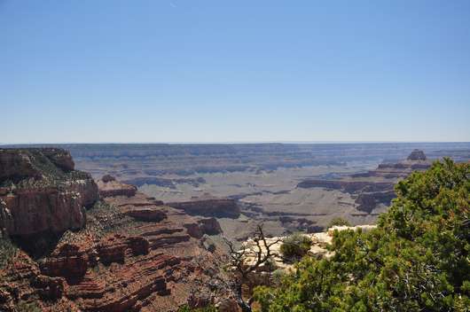 Leider kann die Kamera den Eindruck des Auges definitiv nicht einfangen, selbst wenn die Sicht bis zum Horizont klar gewesen wäre (Mir fehlt während des  Schreibens gerade auf, dass beeindruckende Bilder zur Größe des GC wohl immer aus der Luft entstehen….). Dennoch fehlt uns (wie auch schon am South Rim) das „WOW“ Gefühl. Wir lassen die Touristenmengen hinter uns und fahren zum Point Imperial. Um dorthin zu gelangen müssen wir einige Meilen auf der Straße zurück und biegen dann nach Osten ab. Weitere 5 Meilen später ist er erreicht.
