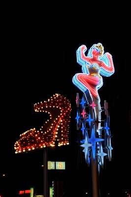 Auf jeden Fall um Klassen besser als die letzte Aktion, aber immer noch zu verbessern. Na, vielleicht gelingt es mir bis zum nächsten Mal ein wenig zu üben. Anschließend statten wir dem alten Strip an der Fremont Street einen Besuch ab. Und ja, es gib etwas Neues! Die Neons hier unteren Ende der Straße kennen wir noch gar nicht (sind 2007 aufgestellt worden):