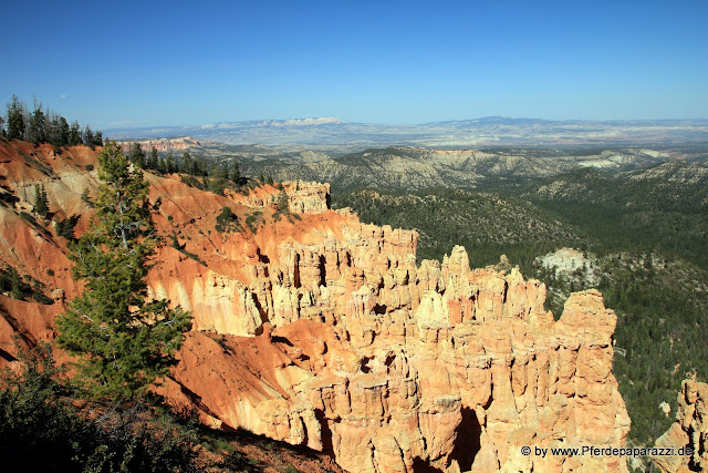 Für hiesige Verhältnisse praktisch ums Eck erreichten wir den Bryce Canyon, ein alter Bekannter aus unserer ersten gemeinsamen USA-Reise in 2007. Gleich am Parkeingang dann aber die erste Enttäuschung, der Zugang in den Park ist wegen des großen Besucherandrangs (hier haben die Ferien angefangen und am Montag ist Feiertag) nur mit dem Shuttelbus zu befahren. Das hat in erster Linie den Nachteil, dass man nur etwa ein Viertel des Möglichen zu sehen bekommt. Dementsprechend war die Stimmung erstmal am Boden. Der erste Gang an die Rimkante konnte den vorhandenen Trübsal jedoch rasend schnell verblasen.