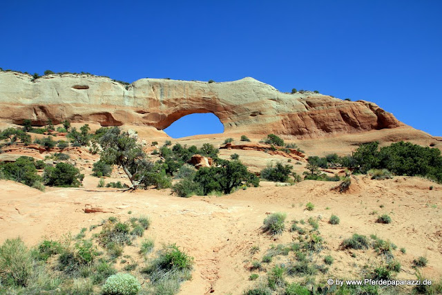 Kurz vor Moab gabs dann einen ersten Vorgeschmack auf morgen. Der Wilson Arch wurde autofahrerfreundlich direkt an den Highway gestellt und zeigt hier schon eindrucksvoll, was uns morgen im Arches National Park erwartet.