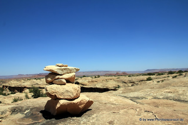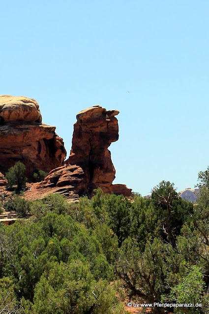 Nur wenig später erreicht man den Canyonlands National Park, welcher mit seiner Vielfältigkeit beeindruckt.  Immer wieder kann man kleinere Looptrails ablaufen auf denen man einen herrlichen 360° Blick auf die Landschaft erhält. Die dort stehenden Felsformationen regen immer wieder die Fantasie an und man kommt unwillkürlich an den Punkt, an dem man den Felsen Namen gibt.