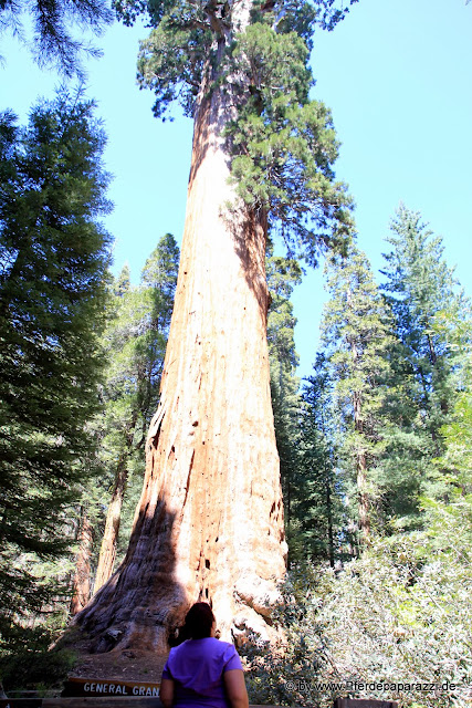 Zunächst ging es in den Sequoia National Park. Hier gibt es eine größere Ansammlung von Sequoias. Das sind riesige Bäume, die zum einen sehr alt und zum anderen sehr groß werden. Hier stehen Exemplare, die über 2200 Jahre alt sind. Desweiteren findet man hier auch die größten Bäume der Welt (in den Disziplinen: Stammvolumen, Stammumfang, Gewicht, Höhe und Alter). Beispiele gefällig??