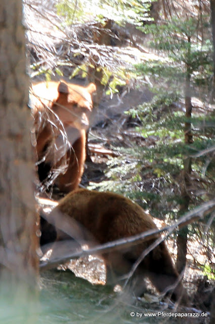 Auf dem Weg in den Kings Canyon standen dann plötzlich einige Autos mitten auf der Strasse und die Insassen starrten gespannt in den Wald. Ein untrügliches Zeichen dafür, dass es hier Tiere zu sehen gab, nur welche?? Steffi hat sie dann zu erst gesehen und bei dem Anblick gemeint, ich solle doch mal eben die Kamera aus dem Kofferraum holen, ja ne, is klar. Hab´s dann doch gemacht, bin dabei aber selten so schnell gewesen.