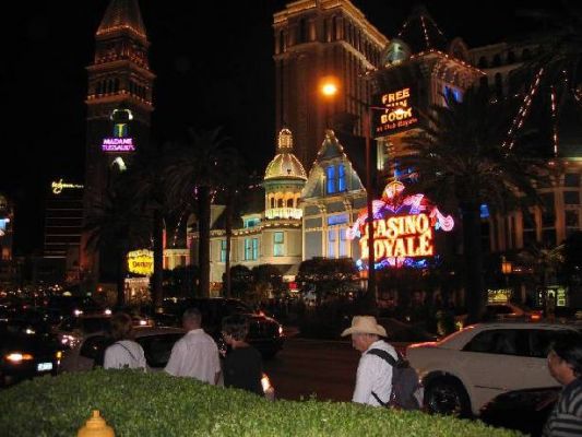 Wir brachten dann das Auto zurück in die Tiefgarage vom Flamingo und zogen noch mal los, da wir die Show mit den Sirenen und Piraten am Treasure Island sehen wollten. Wir waren etwas spät dran und bekamen keinen Platz mehr. Der Zugang über den Plankenweg war mit einem Seil abgesperrt. Von der Straße aus konnte man nichts sehen, deshalb drängelten sich die Kinder etwas durch und fanden noch ein Plätzchen, klein wie sie sind. Lothar und ich konnten die Show nur akkustisch verfolgen, aber es war uns relativ egal.