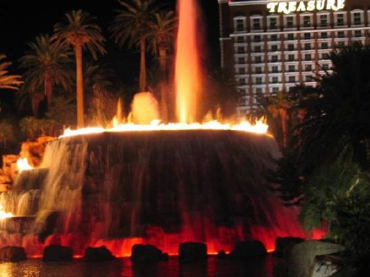 Wir ließen uns in der Menge treiben und schauten uns um. Am Hotel Mirage kamen wir gerade rechtzeitig an, um den “Vulkanausbruch” zu sehen.