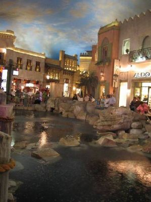 Das Aladdin hat uns sehr gut gefallen. Kitsch hin, Kunstwelt her, das Thema “arabisches Hafenstädtchen” ist schön umgesetzt. Wir ließen uns Zeit und liefen die ganze Runde der Desert Passage. Am Hafen warteten wir auf das nächste künstliche Gewitter. Hier gab es auch einen  Eisladen und ich ließ mich von den Kindern überreden, die Wartezeit mit einem Eis zu verkürzen. Etwas gedankenlos bestellte ich 4 Eiswaffeln mit je 2 Kugeln. Die Überraschung folgte dann auf dem Fuß, denn ich musste ca. 16 $ bezahlen. Ich verbuchte das gedanklich in der Reisekasse unter der Rubrik Lehrgeld.