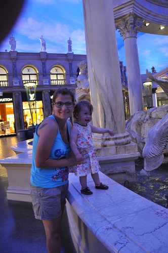 Die Nacht war eher schlecht, Jule war am ganzen Körper vom Fieber ziemlich heiss und permanent unruhig. Gefrühstückt auf dem Zimmer geht es nach einem kurzen Nickerchen von Jule, ihr ging es danach besser, mit dem Trump-Shuttle an den Strip, genau genommen fährt er nur bis zum Caesars Palace, ja genau da wo Cäsar gewohnt hat, und dann weiter per Fuß, Kinderwagen und teilweise Monorail. Mann, wie konnten wir nur vergessen wie bescheuert Vegas für Fussgänger ist. Es ist heiß, laut und es hat zu viele Menschen.