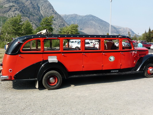 Tja, wieder zurück auf der anderen Seite sehen wir noch so einen roten Bus. Das ist ein Shuttle Bus, den man nutzen kann im Glacier NP und der in der Hauptsaison alle wichtigen Punkte anfährt: