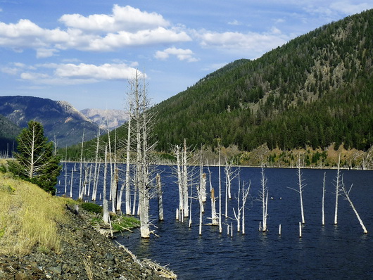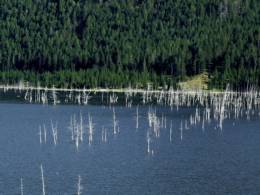 Schon eindrucksvoll die abgestorbenen Bäume im See.