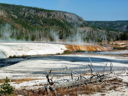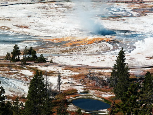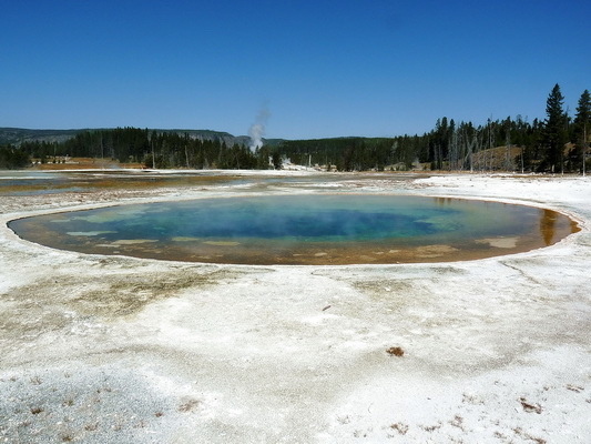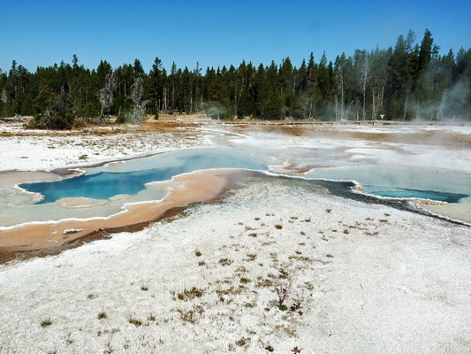 Ab und zu müssen wir auf dem Rückweg ein wenig im seltenen Schatten verweilen. Puh, was schwitzen wir. Dann sind wir wieder am Biscuit Basin. Auch hier das Motto, klein, aber superfein!!!