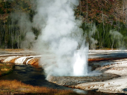 10.09.2011 2. TeilSo, Picknick ist zu Ende. Vom Chromatic Pool geht es weiter bis zum Ende des Boardwalks. Hier sehen wir den Grotto Geysir. Der scheint auch gerade ziemlich wütend zu sein und spuckt. Mal mehr der Kleine neben dem Grotto und auch der Grotto selbst. Toll!