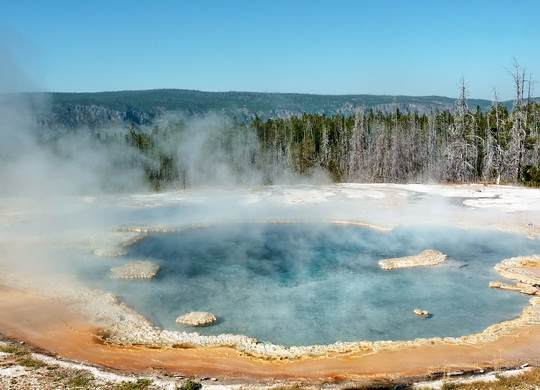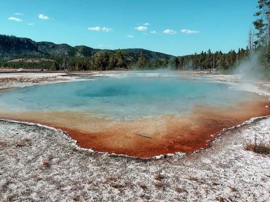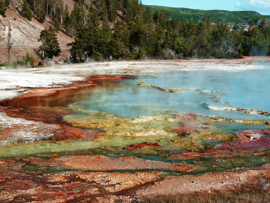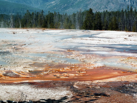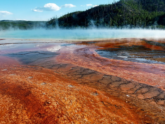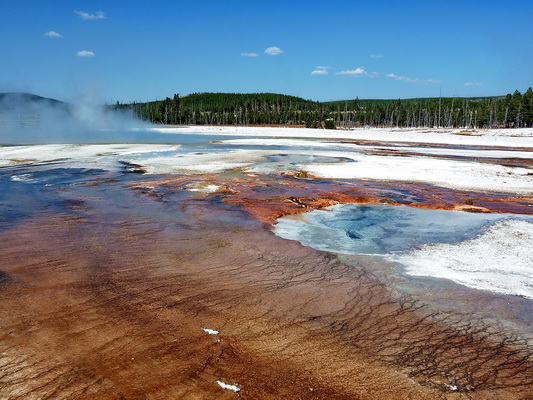 Auf dem Weg zurück zum Hotel geht es dann nochmal zum Midway Geyser Basin, wo wir heute morgen ja vor lauter Dampf nichts haben sehen können.