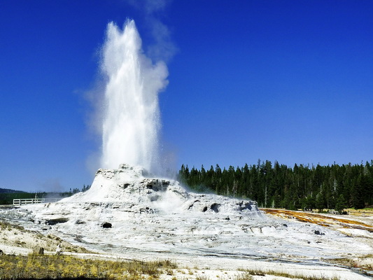 Dann erreichen wir den Castle Geysir. Der soll in ca. 45 Minuten ausbrechen. Das ist ja das Schöne, wenn man länger im Yellowstone ist. Wir haben viel Zeit und müssen nicht hetzen und darum warten wir natürlich.