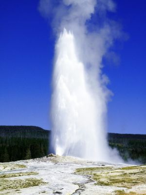 Schließlich erreichen wir das Old Faithful Visitor center. Wir sehen auch Menschenmassen, das heißt ja wohl, dass der Old Faithful gleich ausbrechen müsste. Wir warten 15 Minuten und das Schauspiel beginnt!!