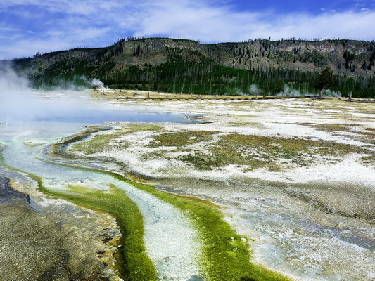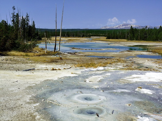 So, dann gehts auf zum Biscuit Basin, denn da startet unser Trail zu den Mystic Falls.