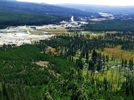 Der Fairy Falls Trail führt neben dem Grand Plasmatic Spring vorbei und wir kommen an den Hügel, von dem man einen sagenhaften Blick haben soll. Das habe ich hier im Forum erfahren.