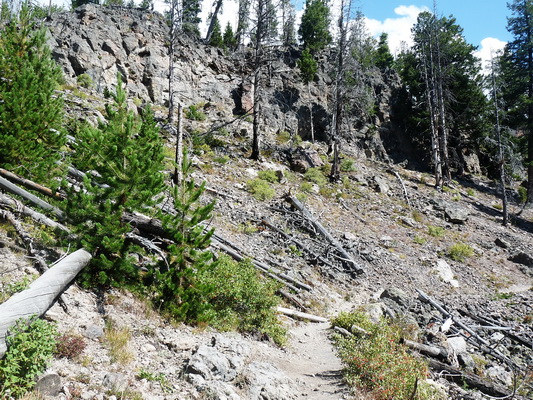 Dann kam das Sheepeaters Cliff. Unterhalb gibt es einen tollen Picknickplatz mit Bänken, wo wir auch verweilten mit Sandwich, Salat und Früchten.