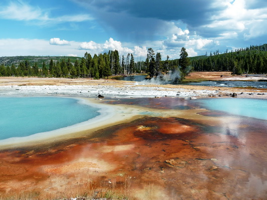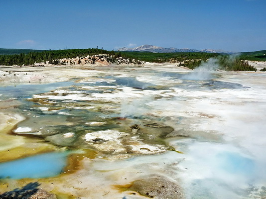 also der Morning Glory Pool ändert nach meinen Informationen wirklich die Farben. Ich glaube, dass der auch ab und zu "gereinigt" wird und z.B. die Geldstücke herausgefischt werden. Ich habe Fotos im Web von vor 3 Jahren gesehen und da hatte er ganz andere Farben. Da war er innen nicht grün, sondern knallrot und zig andere Farben waren vertreten.