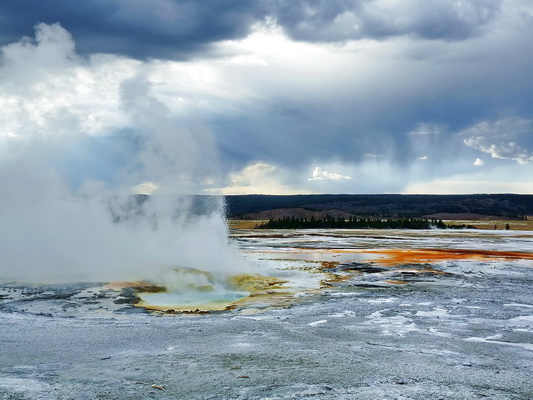 Sehr schön ist der Great Fountain Geysir. Allerdings ist der Ausbruch in einem grossen Zeitfenster von ich meine plus minus 8 Stunden. Darauf können wir nicht warten. Aber sehr schön!!