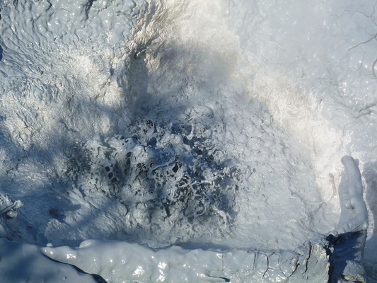 Hier mal von Nahem. Wasser spritzt hoch aus allen möglichen Löchern: