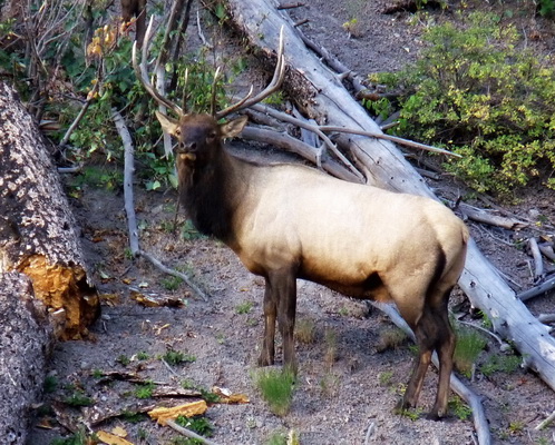 Dein Elch ist übrigends ein Elk - d.h. wenn ich es richtig weiß, ein Wapitihirsch. Elche heißen moose und haben ein viel größeres schaufelartiges Geweih.   :dozent: