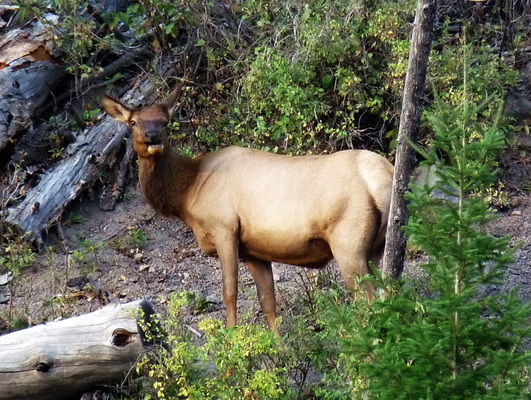 Dann hielten wir an einem der vielen Turnouts und wollten eine Rauchen. Plötzlich sehen wir einen Bison und ja was ist es nun? ein Reh? eine Elchin? ein Moose? oder oder oder?