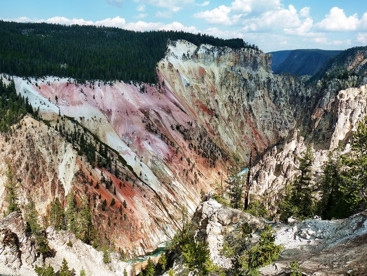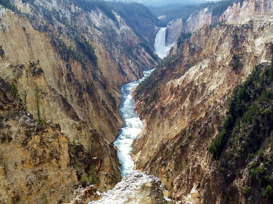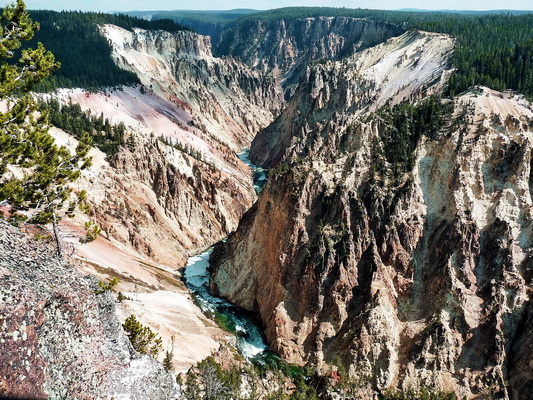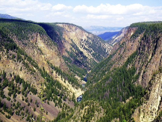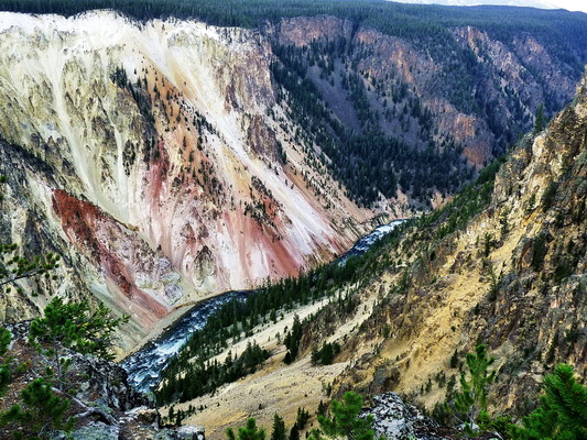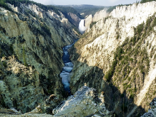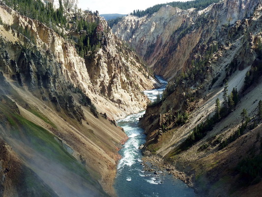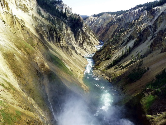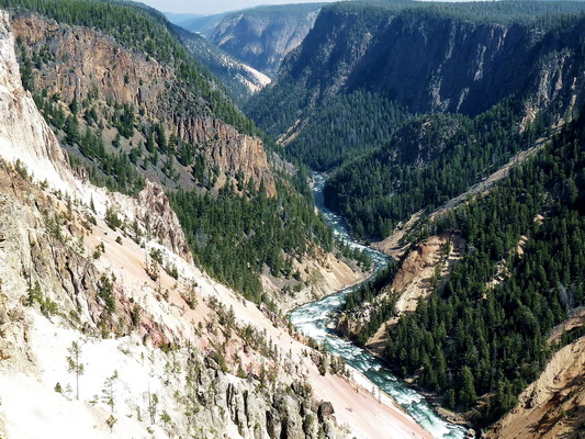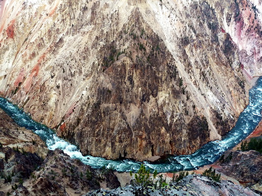 Hier noch 2 Fotos vom Yellowstone River,, der tief unten seine Bahnen kreist: