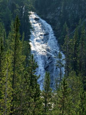 Hinterm Norris Geysir Basin ging es rechts ab. Nach einer Weile sehen wir ein Schild mit Virginia Cascades. Hmmm...biegen wir mal ab in die Einbahnstrasse und irgendwann erreicht man die Falls.